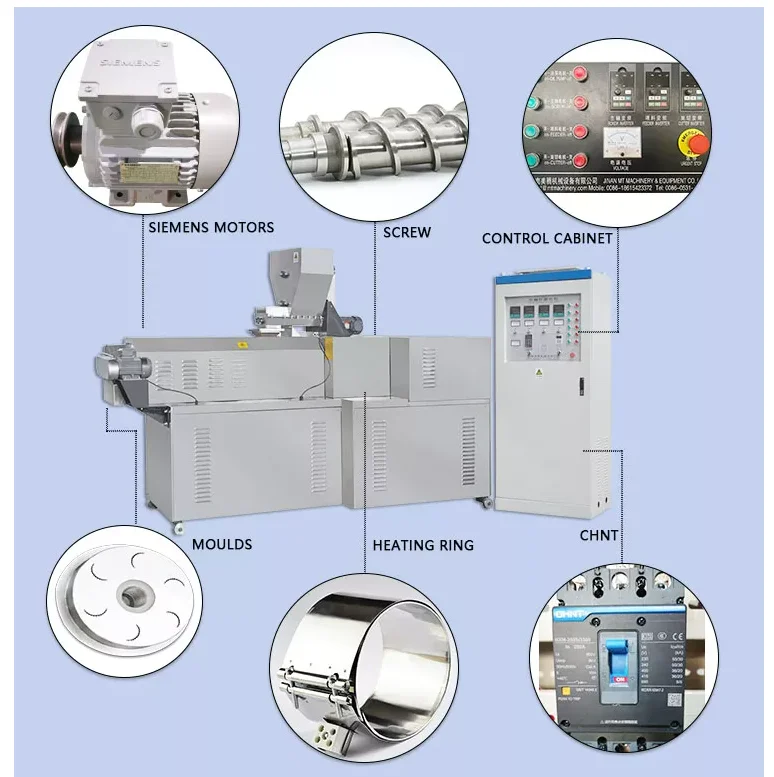 Nossos produtos incluem: equipamento de linha de produção de alimentos tufados, equipamento de linha de produção de grãos de café da manhã de flocos de milho, equipamento de linha de produção de arroz, amido modificado, equipamento de linha de produção de pó nutricional, equipamento de farelo de pão tufado, equipamento de alimentos fritos, equipamento de ração para animais de estimação, linha de produção de macarrão instantâneo, etc.